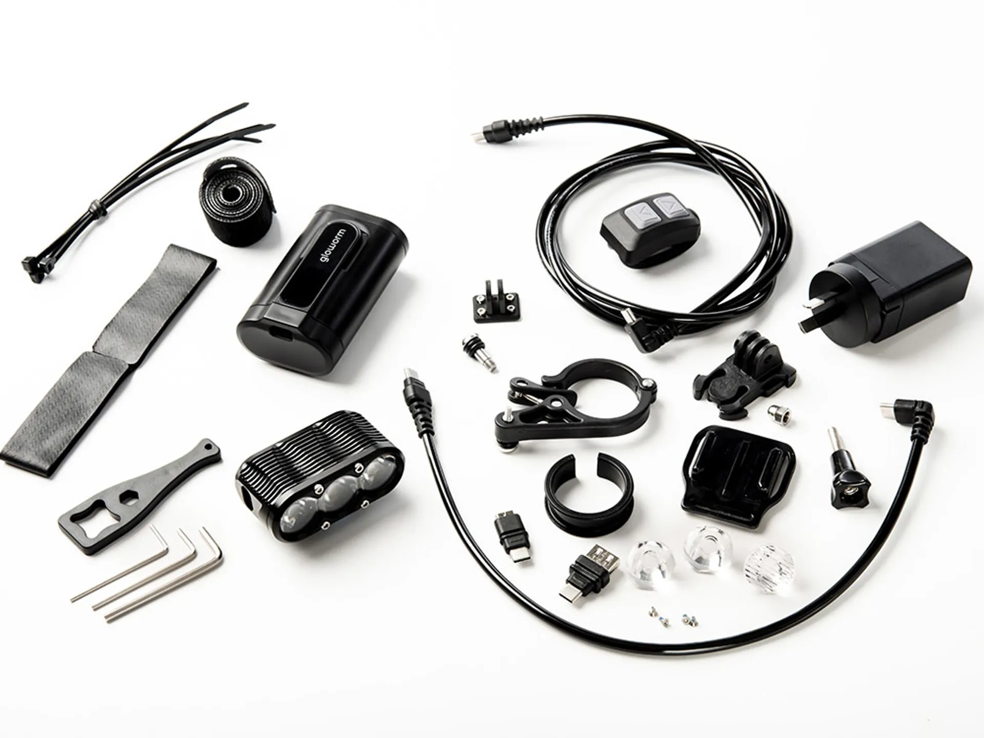 The ever popular Gloworm XS has been paired with the Power Pack 5 to create the XS Adventure. This pairing allows a lighter weight setup without sacrificing light output. The XS is the perfect balance of weight and output making it light enough for helmet and bright enough for the bars. Combine its 2800 lumens with the convenience of a wireless remote and Mobile App customisation and you’ve got the perfect partner for your next after hours escape.